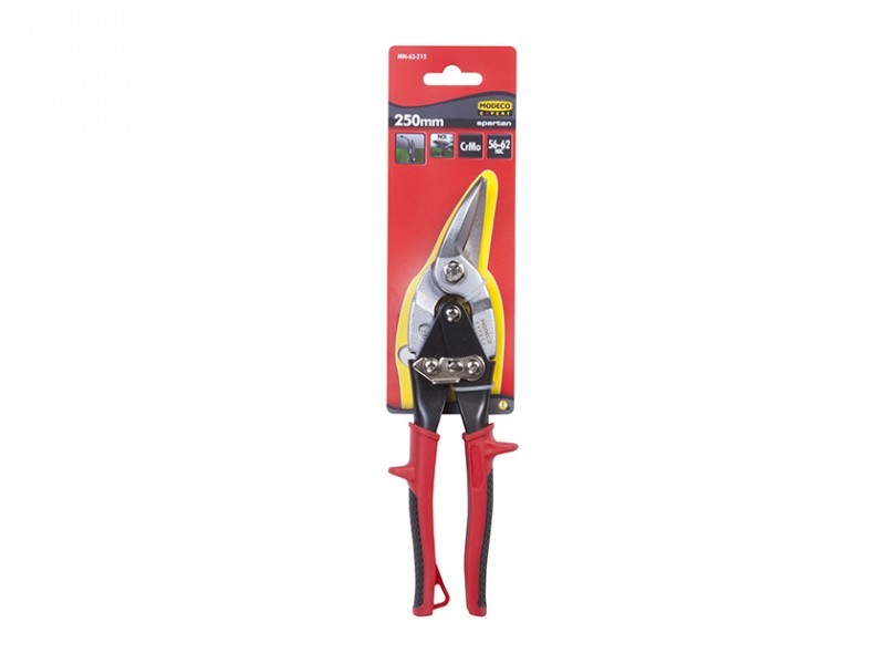 Nożyce blacharskie przegubowe uniwersalne wykonane ze stali twardości do 55 62 HRC. Przeznaczone do cięcia stali do grubości 1,8 mm i stali nierdzewnej do gruboci 1,5 mm. Zastosowany przegub pozwala na użycie mniejszej siły podczas cięcia blach. Posiadają rączkę Friendly Grip, która dopasowana do dłoni sprawia, że praca jest dużo wygodniejsza i łatwiejsza.