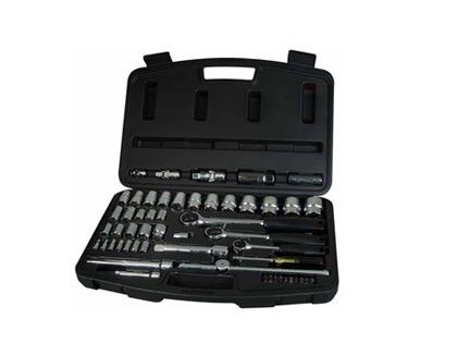 - Zestaw 60 szt.: 3/8”, 1/4”; 1/2” rękojeść z grzechotką; 1/4” pokrętka do nasadek; 3/8”, 1/4”, 1/2” przedłużka 75, 125, 150 mm; 1/2” rękojeść przesuwna 250mm; 3/8”, 1/4”, 1/2” przegub uniwersalny; 1/2” nasadka do świec 16, 21 mm; 1/4” uchwyt do bitów; 10 x bit; 7 x klucz sześciokątny: 1.5, 2, 2.5, 3, 4, 5, 6mm; 9 x nasadka 3/8”, 6 pkt.: 10, 11, 12, 13, 14, 15, 16, 17, 18 mm; 7 x nasadka 1/4” 6 pkt.: 4, 5, 6, 7, 8, 9, 10 mm; 13 x nasadka 1/2”, 12 pkt.: 13, 14, 16, 17,18, 19, 21, 22, 24, 27, 28, 29, 32 mm