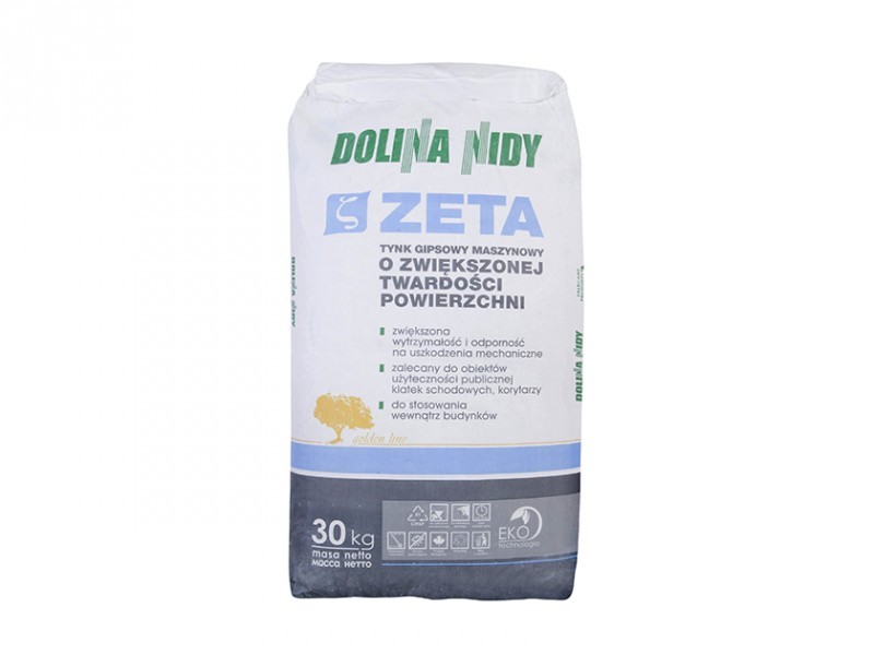 TYNK GIPSOWY MASZYNOWY ZETA przeznaczony jest do wykonywania wewnętrznych jednowarstwowych tynków gipsowych w budynkach użyteczności publicznej, hotelach, szpitalach, szkołach oraz w budownictwie mieszkaniowym. Może być nanoszony na ścianach i sufitach, w pomieszczeniach o normalnej wilgotności powietrza, również w kuchniach i łazienkach ZUŻYCIE 1,1KG/M^2/1MM